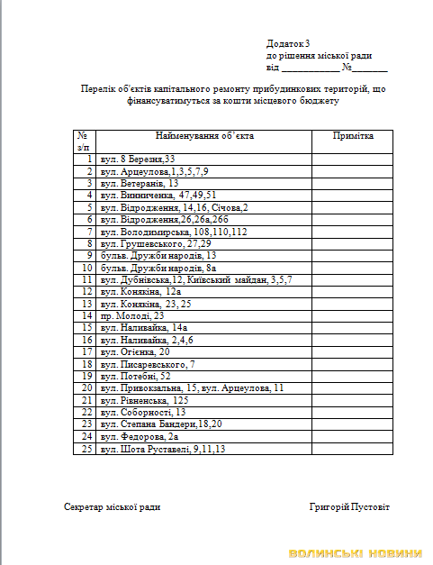 Чи зміниться цей перелік стане відомо вже ближчим часом – під час 54-ої чергової сесії міської ради. Вочевидь, незмінною залишатиметься сума видатків на ремонтні роботи. А ось які об’єкти зміняться, і за рахунок чого – Інформаційне агентство Волинські Новини інформуватиме читачів після затвердження переліку депутатами міськради. Список депутатів міської ради та їх округів можна знайти тут.