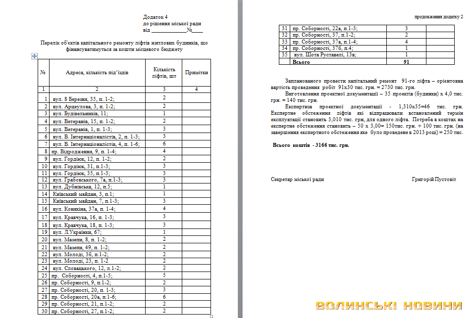 - об’єкти житлового фонду: проспект Волі, 22а (встановлення перетворювачів частоти).