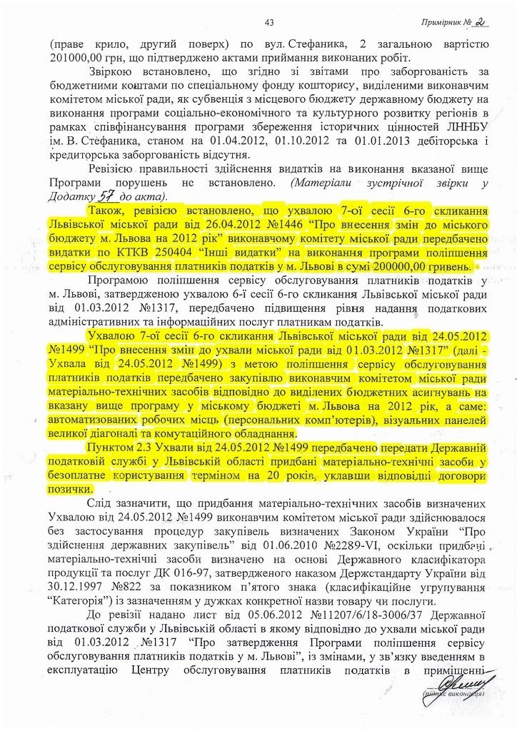 У Акті йдеться, що станом на 01.12.2012 року на балансі ЛМР перебуває 62 транспортних засоби. 38 з них, відповідно до рішення виконкому від 09.11.2007 року передано у безоплатне користування терміном на 10 років Львівському міському управлінню ГУ МВС України у Львівській області.