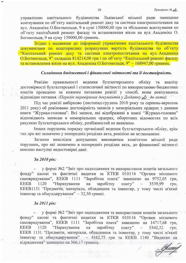 Та найщедрішими працівники Ратуші виявились для прокуратури. Вони станом на 2012 рік вклали у ремонт будинку на вул. Богомольця, 9, у якому працює Прокуратура м. Львова, майже мільйон грн. Йдеться про ремонт даху, фасаду та заміну вікон.Після отримання такої інформації не дивно, що до пори до часу у Садового було все у порядку з законом. Не було жодних проблем зі самовільними будівництвами, з продажем комунального майна, з експлуатацією протермінованого звалища тощо, підсумовують наостанок журналісти.