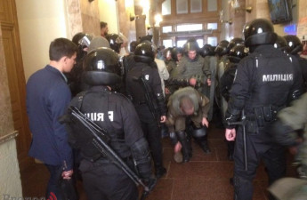 Крик і хаос, люди силою намагаються увійти всередину, їх не пускають спецпризначенці, пустили газ - така ситуація сьогодні у Львівській міській раді. Садовий, як повідомляють місцеві ЗМІ, втік ще до приходу мітингувальників