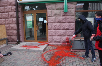 Протест проти банку АТ «Сбербанк Росії» влаштували в Луцьку. Громадські активісти закликали не вкладати у нього кошти,Ю так як прибутки ідуть у країну-агресор, а потому символічну «кров» розлили біля входу в заклад та вигукували лозунг «Геть ворожий бізнес!»