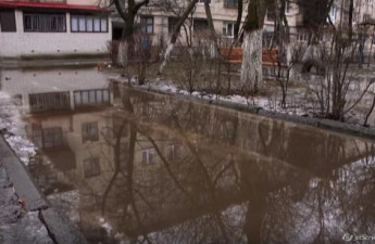 Коли тане сніг або йдуть дощі мешканці будинку по проспекту Грушевського, 14 не можуть дійти до своїх під’їздів. Кажуть, живуть, як у Венеції. У їхньому будинку протікає дах, стіни вкрились тріщинами, мощення будинку потребує ремонту та найбільшою проблемою є відсутність зливової каналізації і дренажної системи.