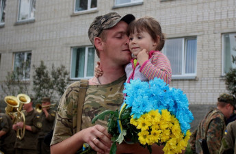 «Татууу!», - маленький хлопчик кидається в обійми засмаглому воїну. В одного в руці – синьо-жовті кульки, у другого – автомат за плечем. Навколо них – до двох сотень людей, але в цю секунду для цих двох немає нікого. Бо вони не бачилися довгих два місяці