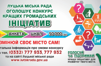 Луцька міська рада оголошує конкурс кращих громадських ініціатив. Будь-який лучанин зможе висунути ідею для розвитку міста: це може бути благоустрій мікрорайонів, вулиць, зон відпочинку, освітлення, проведення історичних заходів тощо