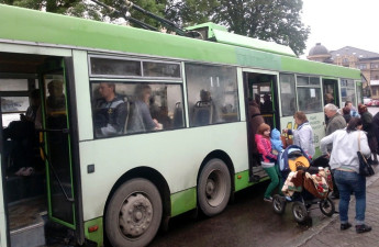 Луцьком їздить тролейбус, у салоні якого стирчать електричні дроти