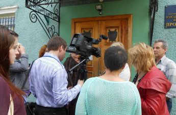 Мешканці будинку по проспекту Соборності, 24 прийшли на сесію, вимагаючи знести незаконне будівництво. Розлючені люди чекали годину, поки депутати сформують порядок денний. По тому вони не витримали і кількадесят городян зайшли з вигуками до сесійної зали