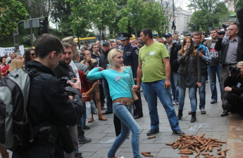 Морквою закидали будівлю Уряду у Києві активісти Автомайдану та Фінансового майдану, вимагаючи відставки Арсенія Яценюка