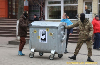 На територію підприємства активістів не пустили, тому «урочисте» спалення відбулося під парканом курзаводу.