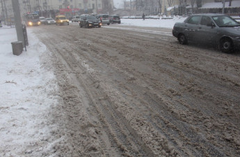 Комунальники не розчистили належно від снігу місто. Як наслідок, на дорогах утворюються колії, рух машин стає небезпечним