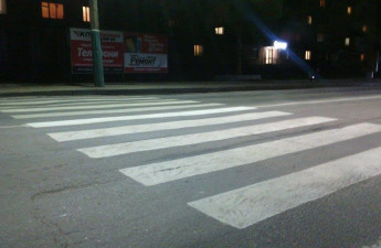 Попри несприятливу погоду, 9-го березня, поблизу школи №3 у Володимирі-Волинському дорожня служба нанесла розмітку на мокрий асфальт.