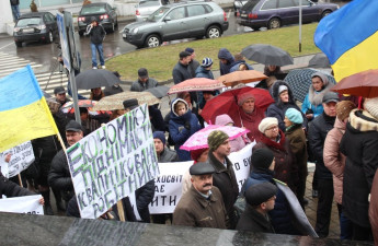 Представники п’яти закладів профтехосвіти з різних районів Волині пікетують будівлю обласної ради, нарікаючи на відсутність фінансування.