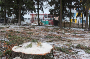 Десяток дерев уже зрізали за кінотеатром «Промінь», ще близько 20 чекають своєї черги. Саме так, ціною зеленої зони, де містяни бачили сквер, бізнесмени розбудовують інфраструктуру кінотеатру, аби зробити там парковку