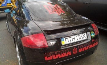Зараз патріотам забороняють номера ПТН-ПНХ. З такими написами наші бійці на сході били ворогів. Потім патріотам заборонять співати Путін-Ла-ла-ла. Потім заборонять говорити Слава Україні - Героям слава !. Це зрада і контрреволюція. За що загинули наші хлопці на Майдані? За те щоб олігарх Пеця став президентом? Щоб щур аваков знищував патріотів?