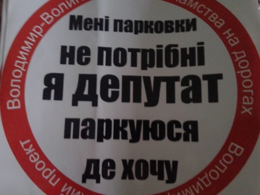 На неправильно припаркований автомобіль «Мерседес», на якому їздить міський голова Володимира-Волинського Петро Саганюк, активісти наклеїли напис «Мені парковки не потрібні – я депутат паркуюся де хочу». Про це повідомляє Вголос.