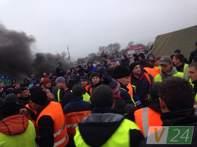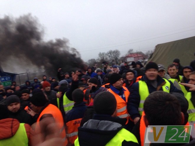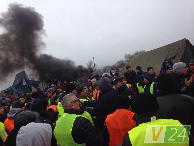 Бійка на «Ягодині»: вантажівка прорвала кордон мітингувальників