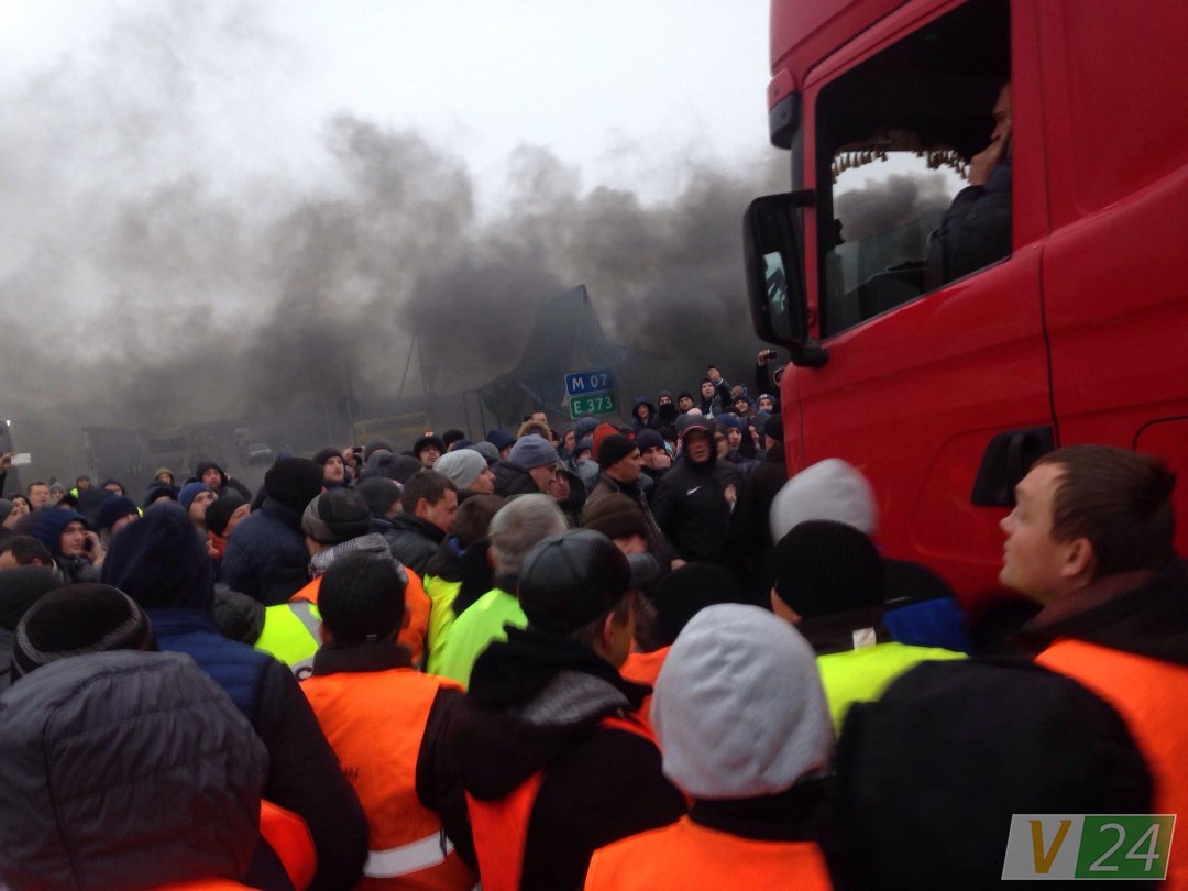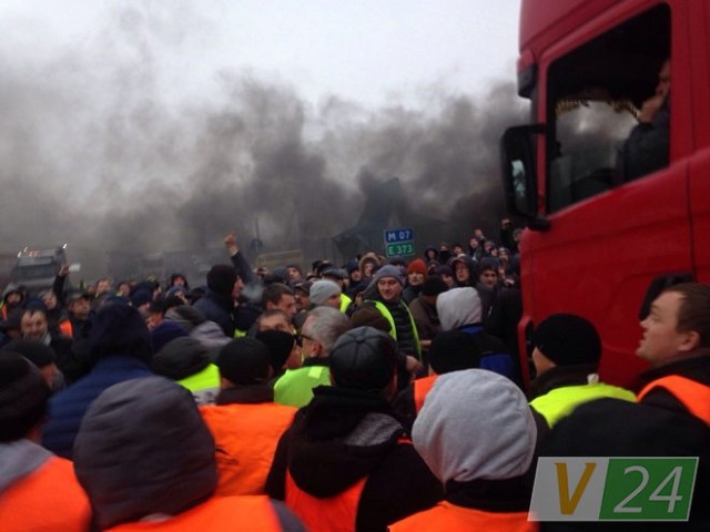 Один із водіїв-далекобійників вирішив не чекати своєї черги на проїзд і поїхав через натовп, ледь не наїхавши на людей. Це вкрай обурило страйкарів і вони почали зупиняти машину та жбурляти в неї усілякі предмети, включно з палаючими шинами. Водій у відповідь кричав з кабіни «Я вас всіх поріжу!».У ситуацію втрутився спецпідрозділ поліції. У натовпі почалась бійка. Правоохоронці силою її загасили.
