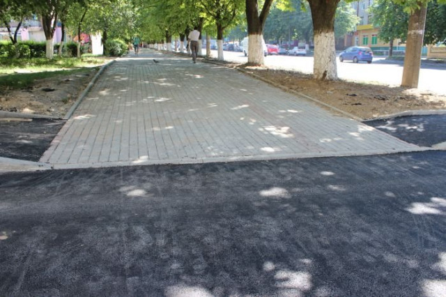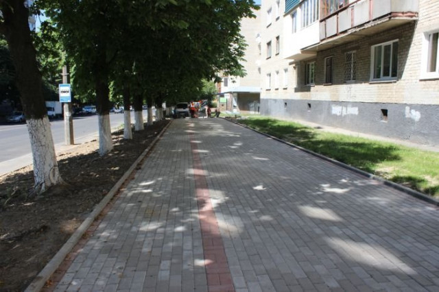 Варто зазначити, що під час проведення робіт і на цьому тротуарі облаштовують велодоріжку.Завершені роботи з ремонту тротуару по проспекту Соборності, де теж влаштували велодоріжку.