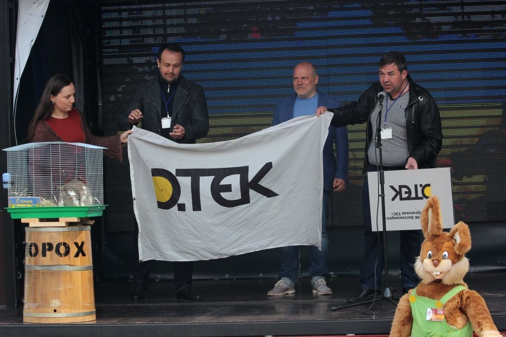 Сьогодні, 15 травня, учасникам акції продемонстрували прапор, який бійці батальйону «Айдар» та київські автомайдінівці зняли з ТЕЦ, що досі належить Ринату Ахметову у місті Щастя на Луганщині. Це – прапор компанії «ДТЕК», одного з монополістів, що продає українцям електроенергію та належить олігарху, який, зі слів активістів, фінансує сепаратистів.Натомість на станції встановили прапори «Айдару» та Автомайдану.