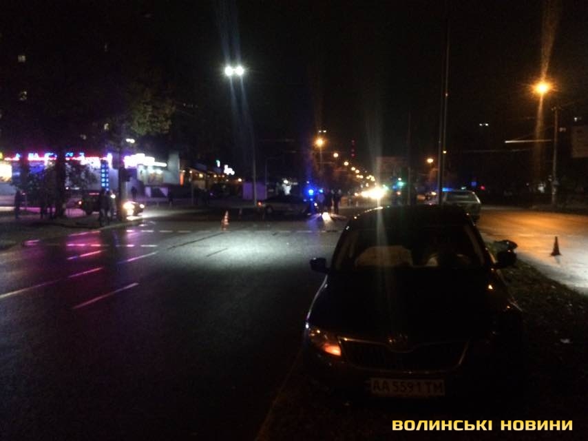 Як повідомили Інформаційному агентству Волинські Новини очевидці аварії, водій автомобіля Ford виїжджав з вулиці Воїнів Інтернаціоналістів та допустив зіткнення, не надавши переваги водію автомобіля Skoda. Від зіткнення Skoda відкинуло на узбіччя, де авто збило світлофор. Відтак, станом на 19:40 на перехресті світлофори не працюють.