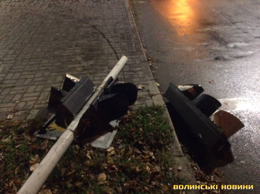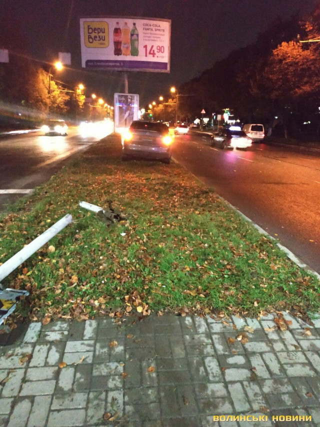 ДТП у Луцьку: від удару авто вилетіло на узбіччя та збило світлофор