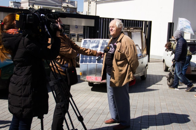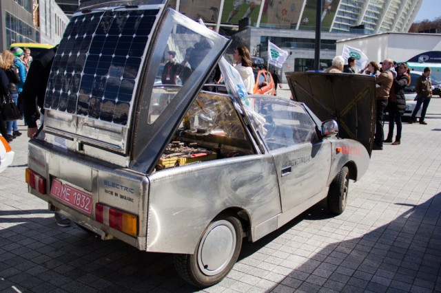 На саморобному електромобілі, який на капоті і даху ще має сонячні батареї, разом з власником покатався навіть міністр екології Ігор Шевченко. Міністр пообіцяв допомогти у прийнятті законопроекту у ВР, який зніме мите на електромобілі, тим самим заохотить людей купувати екологічні машини.