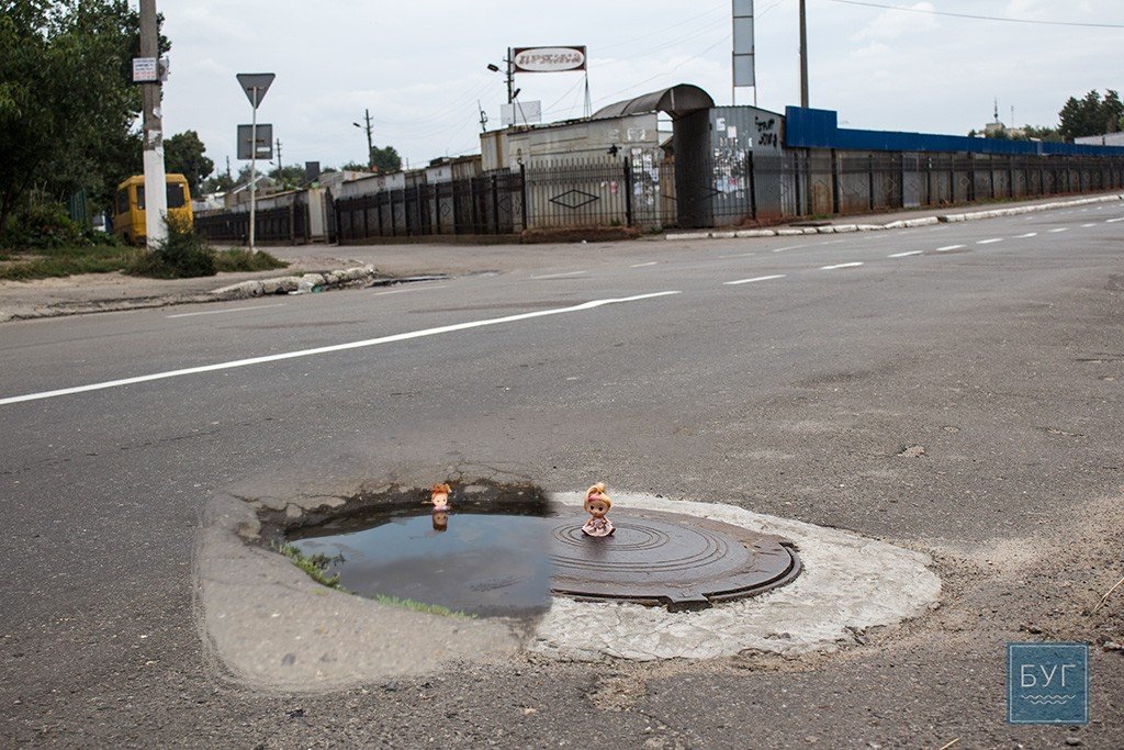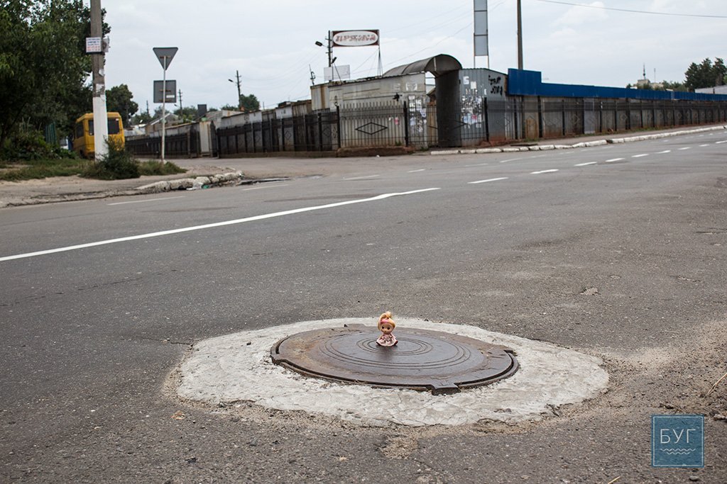 Водночас директор нововолинського водоканалу Володимир Озимчук має на це іншу думку: “Організація, яка робить проект асфальтування, сама повинна автоматично підняти всі каналізаційні системи, – каже Володимир Володимирович, – У нас в місті є 6 тисяч люків, їх крадуть. Хто тоді за них відповідає? А як щось станеться – зразу до нас”.Щодо поганого стану дороги, говорить він, не знав про цю обставину раніше, ніхто про це не повідомляв. На роботи водоканал витратив понад 2 тисячі гривень.Нагадуємо, це – «Інспектор Ляля». В сидячому положенні вона має ріст 7 сантиметрів, тому і служить журналістам своєрідним мірилом, яке візуально покаже, які глибокі та небезпечні насправді вибоїни на дорогах.