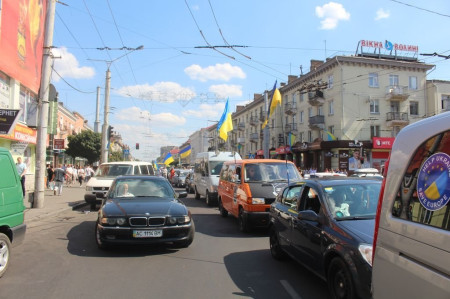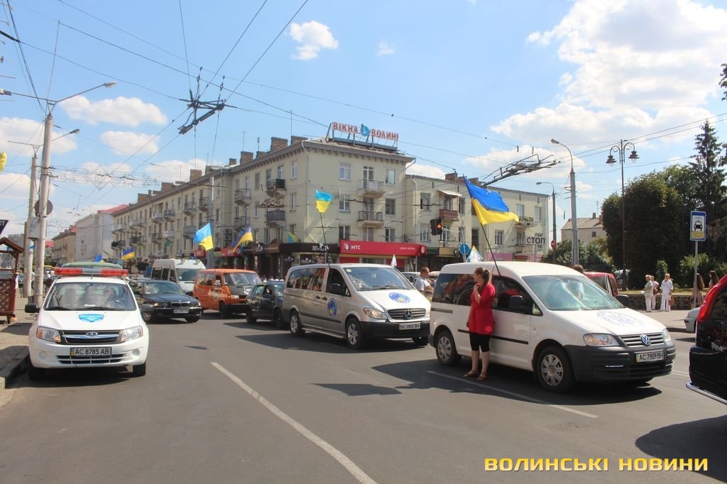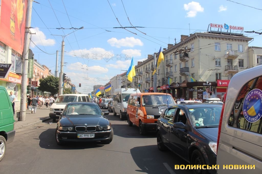 Зрештою, о 14.00 на День Незалежності в центрі Луцька пролунав тривожний сигнал: десятки автомобілів зупинилися на вулиці, а водії вийшли зі своїх автівок і тисли на клаксони.