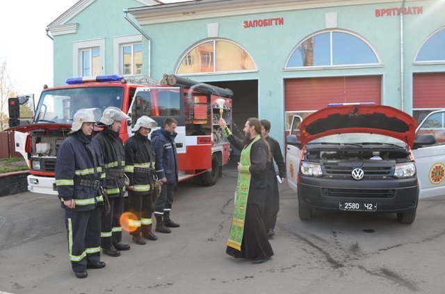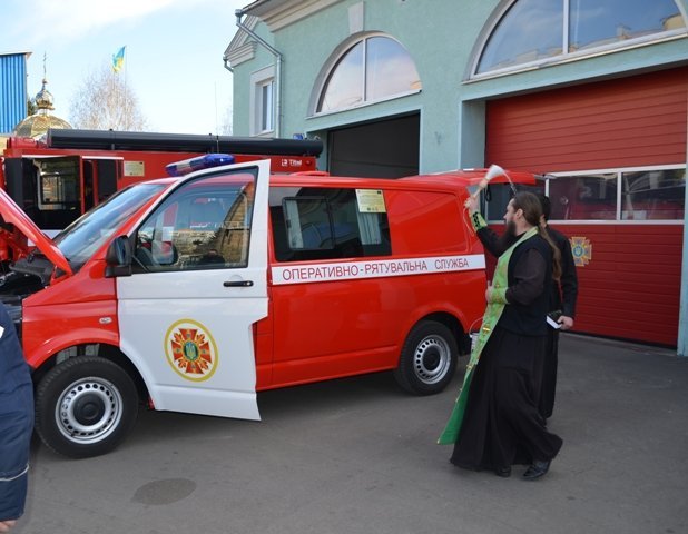 Транспортні засоби освятив настоятель Церкви Ікони Пресвятої Богородиці «Неопалима Купина» протоієрей Макарій і побажав рятувальникам успішної служби на благо народу України.