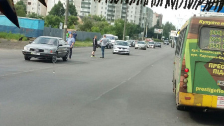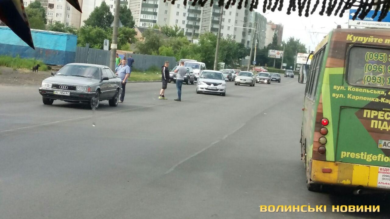 Поблизу зупинки громадського транспорту на вулиці Гордіюк у Луцьку не розминулися два легковики.