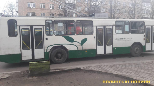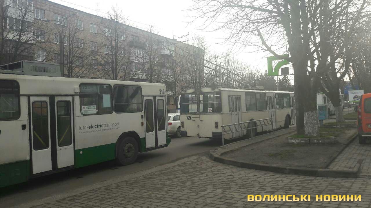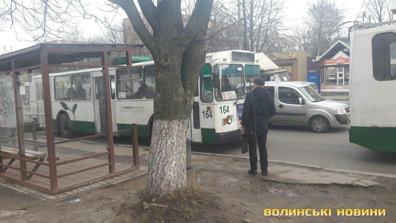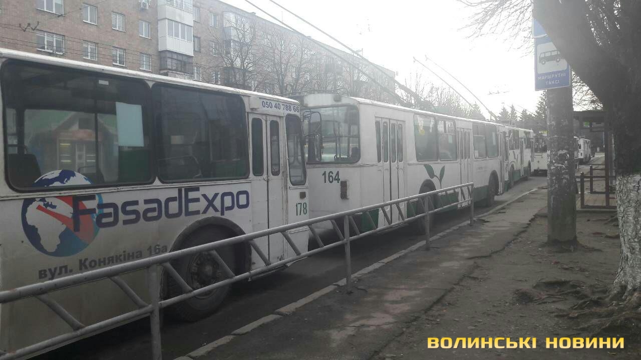 На проспекті у Луцьку зупинилися тролейбуси. Фото