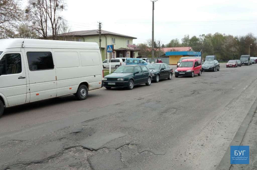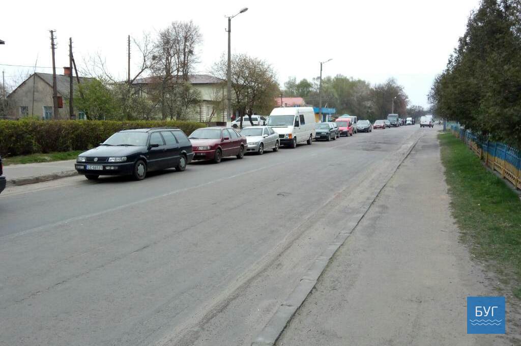 Черга з автомоблівів, котрі прямували на пункт пропуску, перемістилася у місто з сервісної зони близько середини дня 21-го квітня. Авто зайняли одну смугу руху, що спричинило транспортний колапс у місті. Черга простягнулася аж за магазин “Зодіак”.
