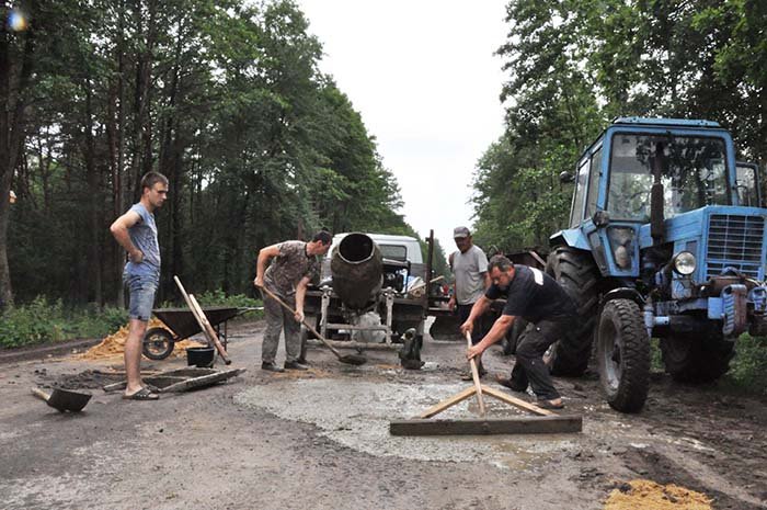 Зо два десятки місцевих чоловіків завзято працювали, навіть в неділю. Адже в селі що не день – то гаряча пора. Всі трудилися безкоштовно, долучилася і сільська молодь. І таким чином вони залатали ями цементом із щебенем на дорозі завдовжки близько двох кілометрів. Підрахували, що на кожні сто метрів ремонту дорожнього покриття витратили не більше кількох тисяч гривень. Якби такі роботи проводила дорожня служба, то це обійшлося б в десятки разів дорожче.