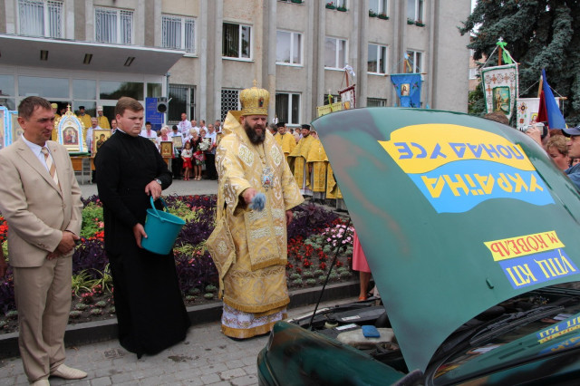 На майдані владика очолив молебень за Україну та освятив автівку, що слугуватиме військовим.