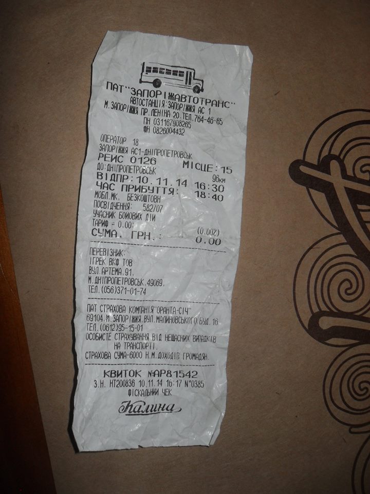 У повідомленні йдеться, що боєць показував касиру квиток з Дніпра до Запоріжжя, який нещодавно брав безкоштовно.