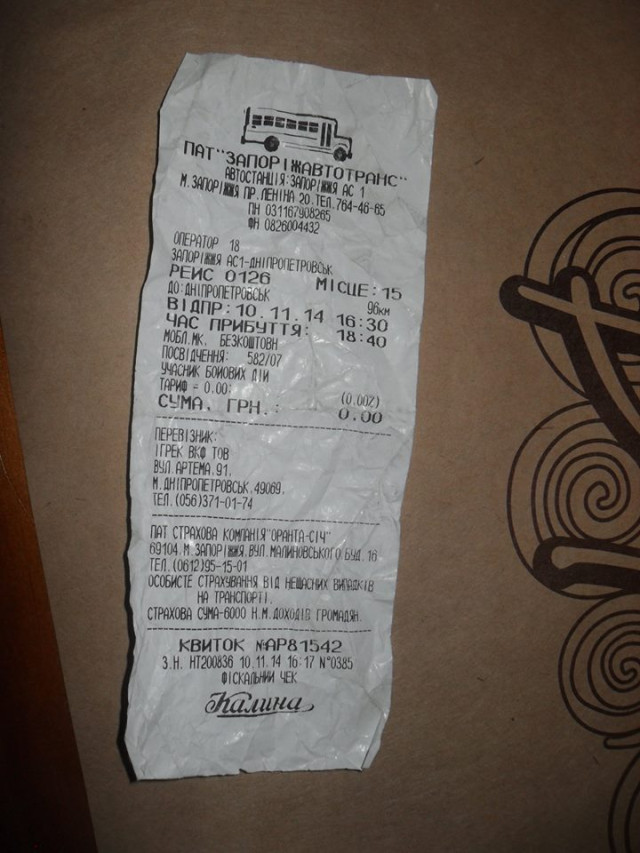 На це він отримав відповідь: «Нам начальство наказало», - написав про цей випадок у одній із соціальних мереж волонтер Сергій Семенюк та ще й додав фото безкоштовного квитка придбаного військовим 51 бригади у Запоріжжі.