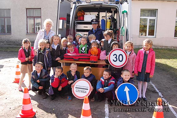 Насамкінець, державтоінспектори продемонстрували школярам автомобіль для оформлення дорожньо-транспортних пригод та подарували плакати із основними правилами безпеки на дорозі.
