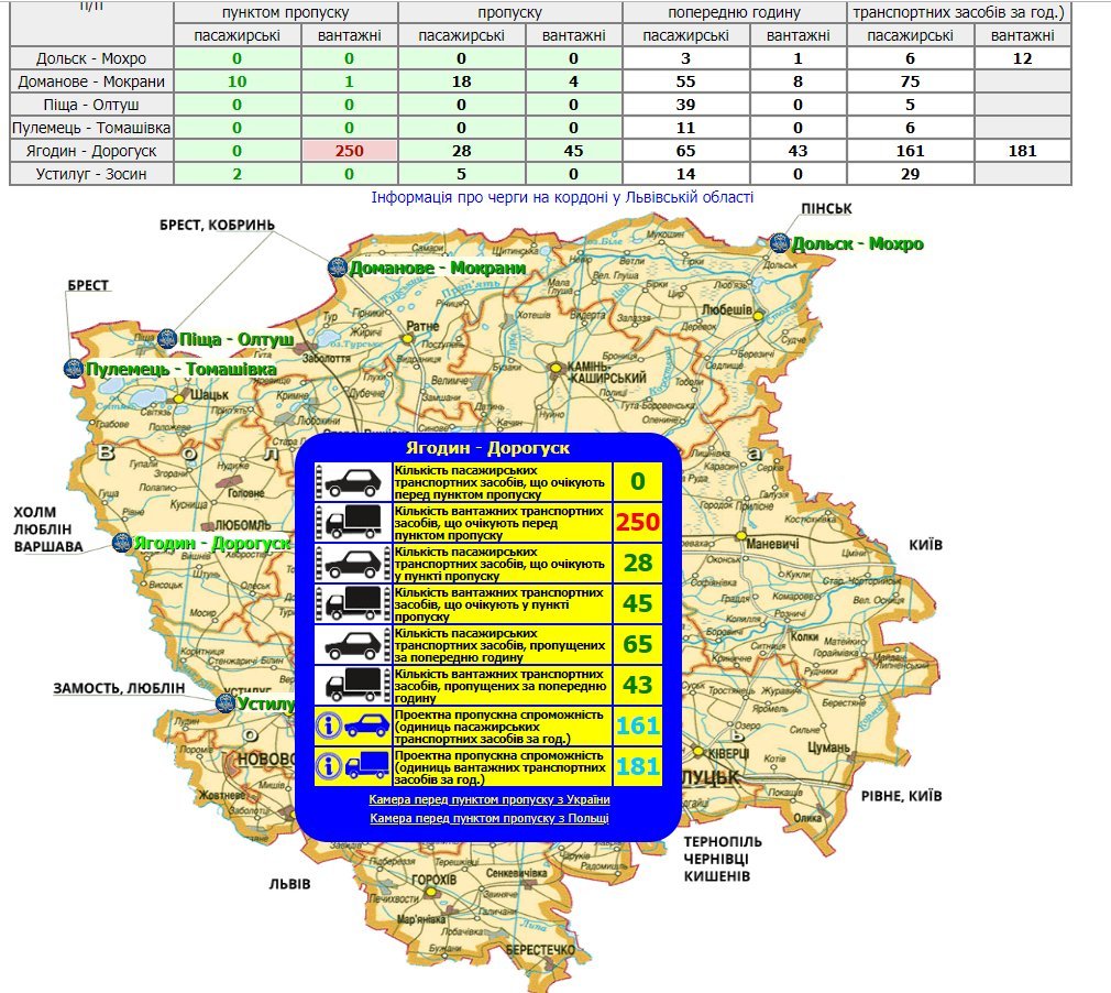 У пункті пропуску «Ягодин-Дорогурськ» утворилася черга приблизно із 250 вантажних автомоблів.
