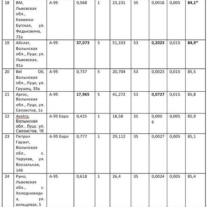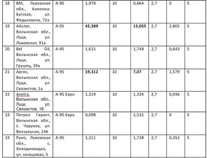На прикарпатських АЗС ситуація не краща: на мережевій АЗС «Укр-Петроль» А95 бензин не відповідав навіть застарілим українським стандартам (ГОСТ 4063-2001) відразу за трьома параметрами ‒ масовою часткою кисню, октановим число, щільністю. І хоча кожне з цих відхилень на межі похибки, їх сумарна кількість змушує сумніватися, що рука «бодяжника» не торкалася цього бензину.