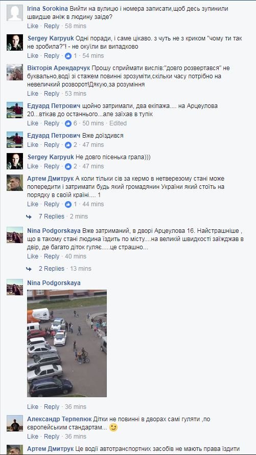 Згодом у коментарях до допису повідомили, що водій намагався втекти від поліції дворами, але заїхав у тупик на вулиці Арцеулова, де його і зупинили.