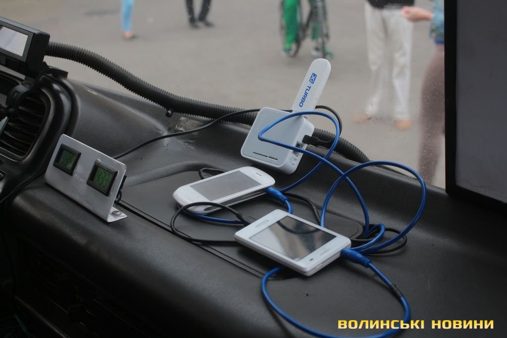 У салоні встановлена система автоматичного оповіщення про зупинки громадського транспорту, а також екран, на якому транслюватимуть новини, погоду тощо. Окрім того, в автобусі працює безпровідна мережа 3G Wi-Fi.Швидкість на момент тесту становила близько 7 мегабіт – цього цілком достатньо для прослуховування музики в режимі онлайн або ж навіть перегляду відео.Наразі прототип на базі «Богдану» А092 вже готовий до використання і сьогодні ж його обіцяють випустити на маршрут. Натомість зазначають, що наступною на черзі модернізації визначили дещо новішу та більшу модель. Це все той же «Богдан», правда більший за розміром.Виготовляли автобус ентузіасти на базі підприємства «Санрайз». Пан Девіцькій зауважує, що розробка не має нічого спільного з корпорацією «Богдан», окрім марки автобуса, який взяли за основу. Далеко не новий «Богдан» дещо відреставрували та модернізували, перетворивши на електроавтобус.