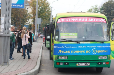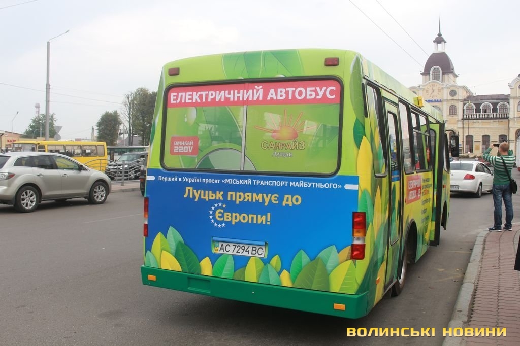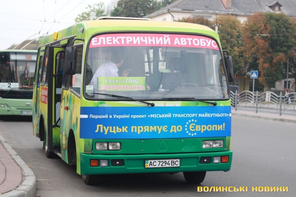 У Луцьку вперше в Україні випустили на маршрут повністю електричний автобус. Маршрутне таксі курсує відсьогодні по рейсу №2, а проїзд в ньому коштує 1,5 гривні.