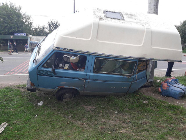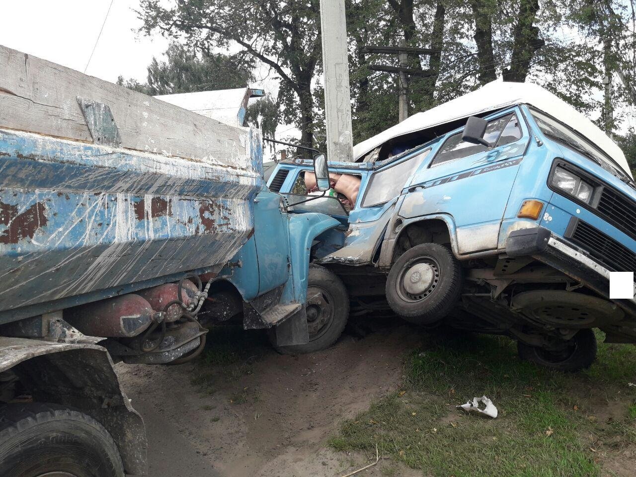 Натомість ЗІЛ, який подовжив рух, зіткнувся з мікроавтобусом, який їхав зустрічною смугою зі сторони Луцька. Вантажівка зіткнулася з бусом та втиснула його у стовп.