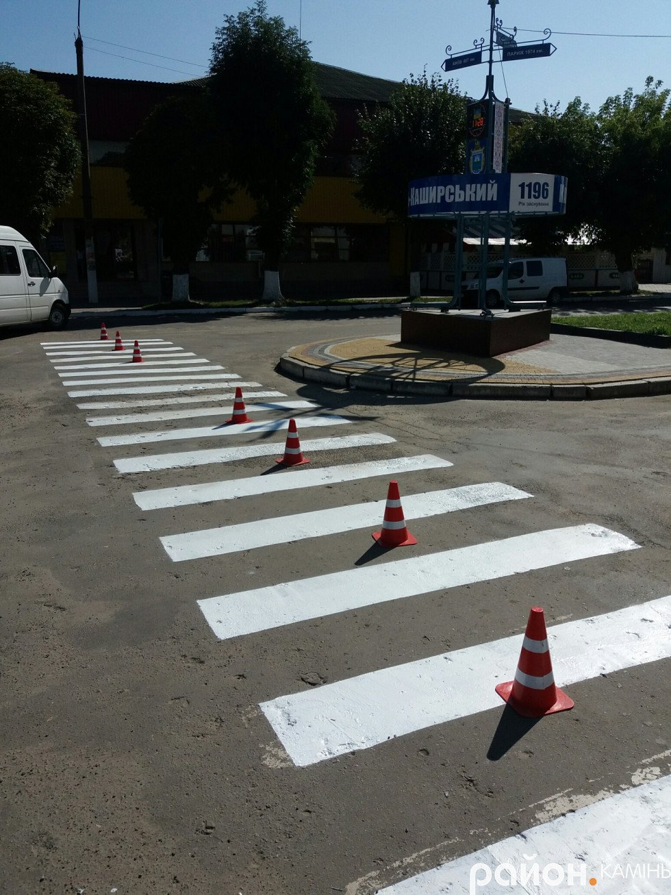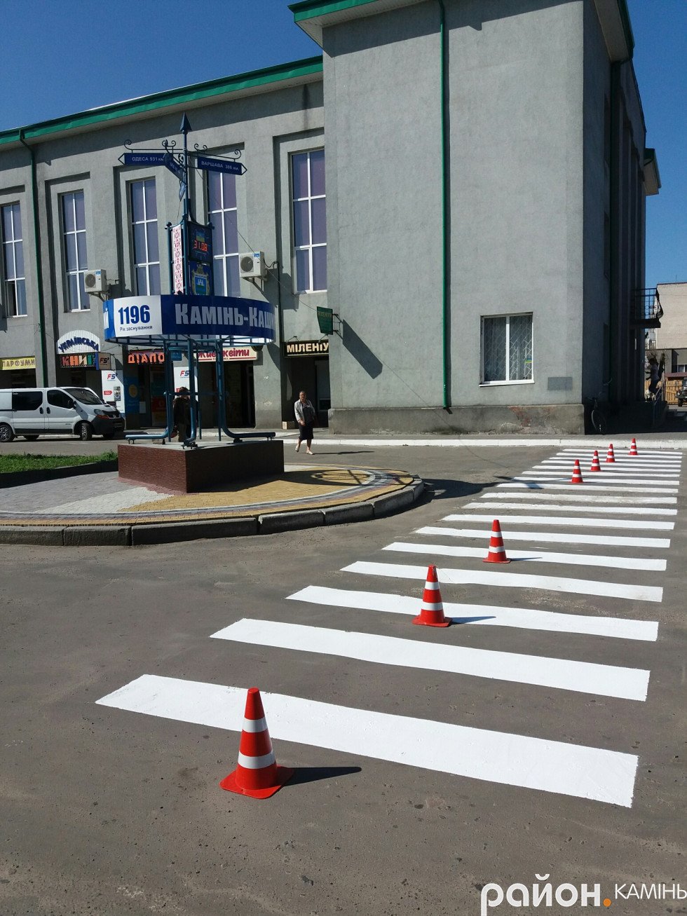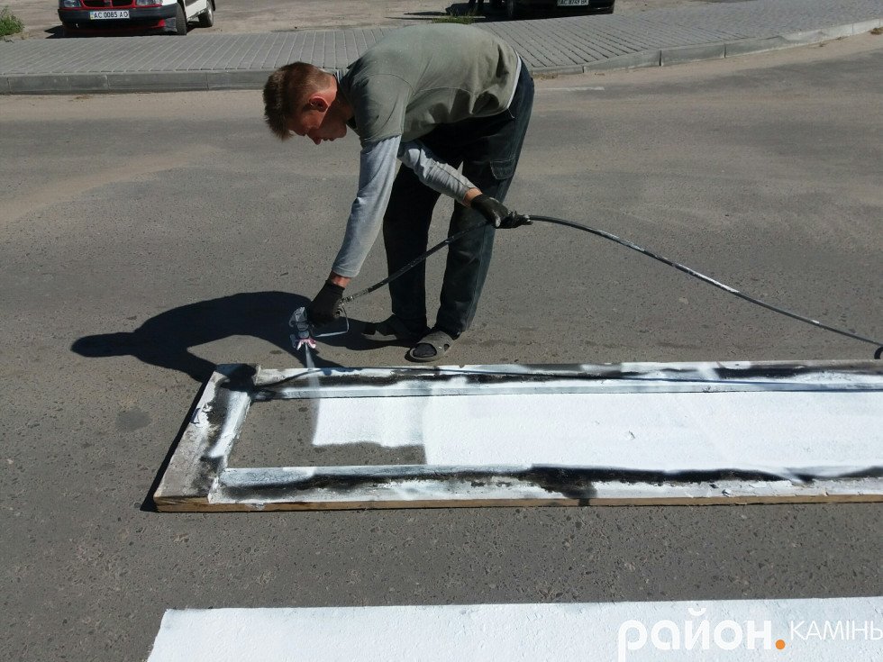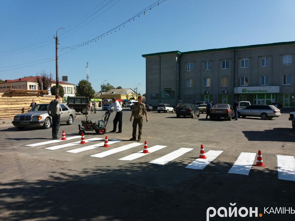 Наразі розмітку нанесли у визначених місцях біля «Нашого Краю», аптеки №9, райвідділу поліції до половини проїжджої частини, пише «Район.Камінь-Каширський».