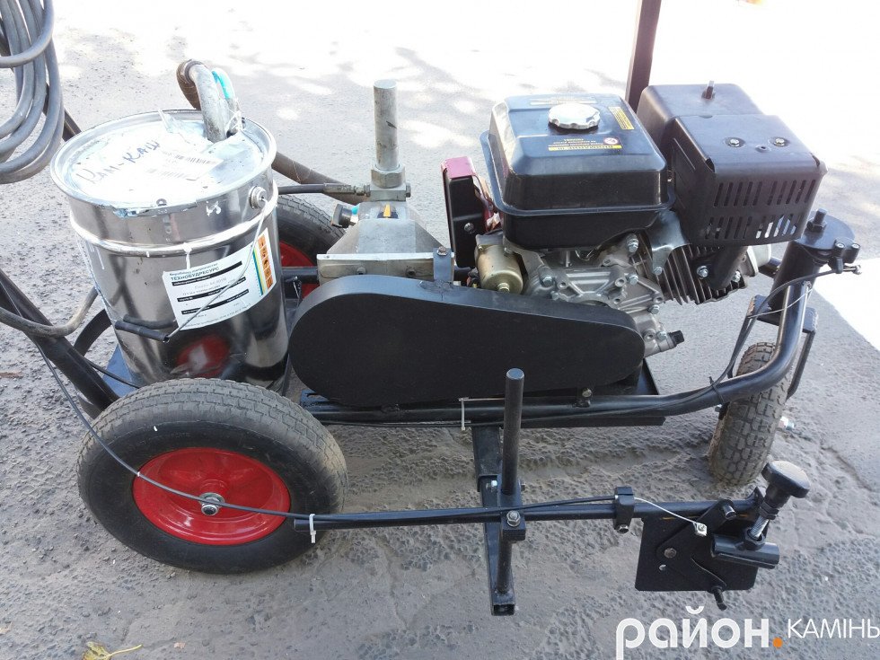 Змайстрував машину для нанесення дорожньої розмітки за замовленням ВУЖКГ та міської ради підприємець Олександр Чирко.