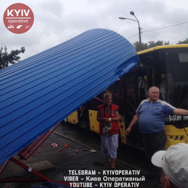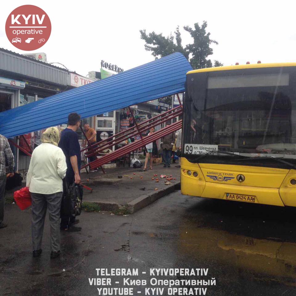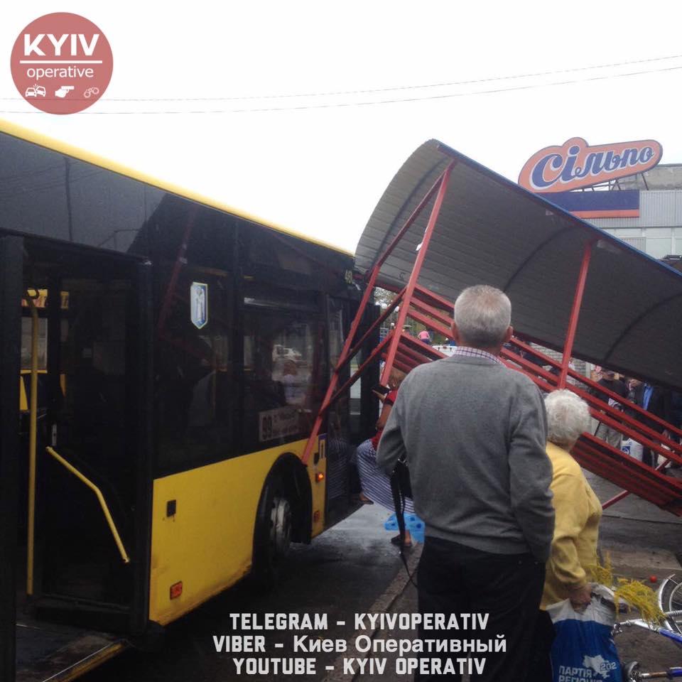 У Києві автобус в'їхав у зупинку з людьми. Фото