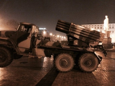 "Михайлівська площа не спить цієї ночі. Такого вона ще не бачила. Володя Кадигроб теж не спить. Готує виставку "Присутність". Із фронту звозять російську техніку. Танки, "Гради", БМП, БТР... Приходьте сьогодні, 21 лютого, з першої години дня на Михайлівську площу. Дивіться, запам'ятовуйте, знайте", - написав на своїй сторінці у Facebook радник голови СБУ Маркіян Лубківський.