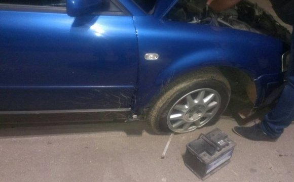 Водій Фольксвагена не помітив електроопору і влетів у неї. Чоловік не постраждав, однак автомобіль зазнав ушкоджень – у нього зламане колесо.