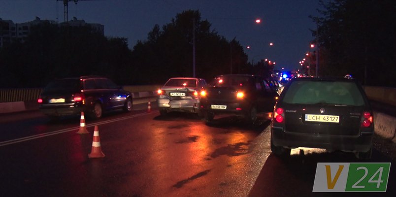 Водій автомобіля марки «Рено», не дотримавшись безпечної швидкості, зіткнувся з «Фольцвагеном», який їхав попереду. Це, в свою чергу, підрізало ще одну машину.
