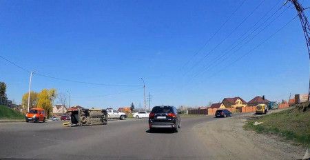 Зазначається, що на повороті з вулиці Будівельної на Мамсурова перекинувся автомобіль «Рено».